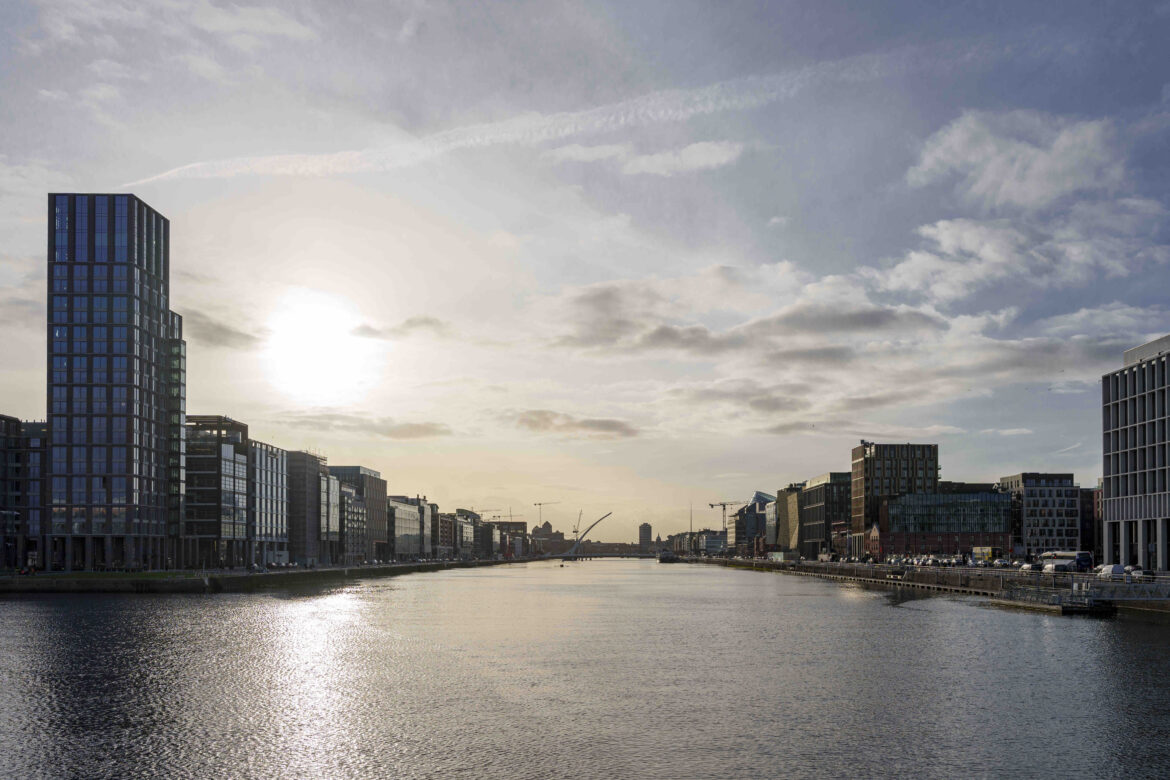 Op straat zijn daar weinig tekenen van te herkennen. Dublinezen zijn massaal te vinden in de bruisende wijk Temple Bar, ten zuiden van de rivier de Liffey. Guinness wordt massaal geschonken in de pub (café). De brouwerij staat in de de hoofdstad, bekend van de donkere kleur en de bruinwitte schuimkraag. Een paar straten verderop zorgen straatmuzikanten voor vreugde met Engelstalige nummers. De politie houdt een vriendelijk oogje in het zeil voor ongewenste gasten. In de lange winkelstraten, qua bouw een Nederlands karakter, vind je naast de bekende Amerikaanse merken veel schoenenwinkels, knusse koffiezaken en delicatessen. In de stad vervoeren witte bruggen met apart fiets- & wandelgedeelte om de paar honderd meter de toeristen over de Liffey. Maar in de brede straten van winkelcluster O’Connell Street ontkom je niet aan de stoplichten en de kriskras overstekende fietsers (door het zomaar ophouden van paden kunnen zij al helemaal beter de stad mijden).