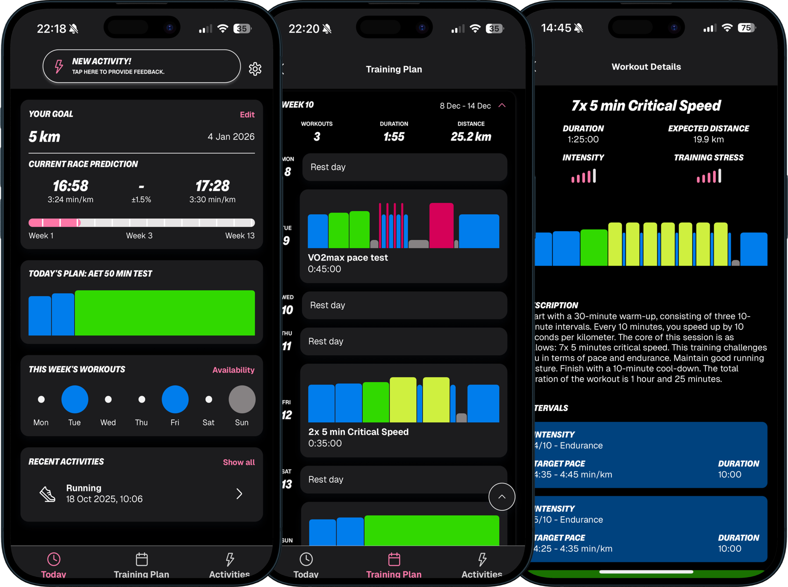 Door trainingshistorie, testresultaten en subjectieve feedback te combineren, wordt de belasting realistischer opgebouwd of net wat afgeschaald. Rustig waar het kan, prikkelend waar het mag. Dat maakt de app geschikt voor zowel beginnende lopers als ervaren hardlopers die al meerdere schema’s hebben geprobeerd.