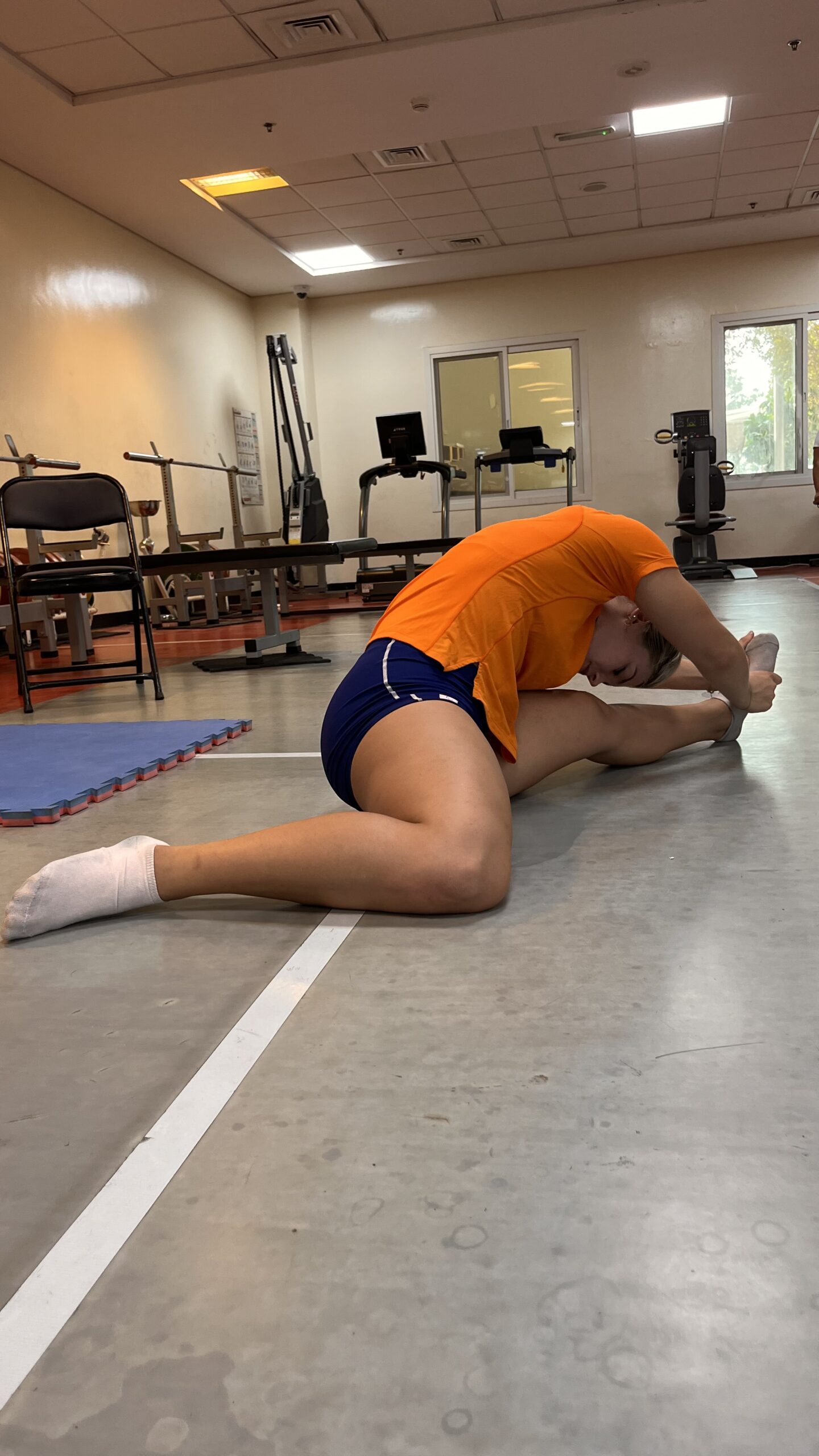 Daarna mocht ik naar de fysio. Zij maakte mijn kuiten (harde atletiekbaan) en hamstring los, superfijn.