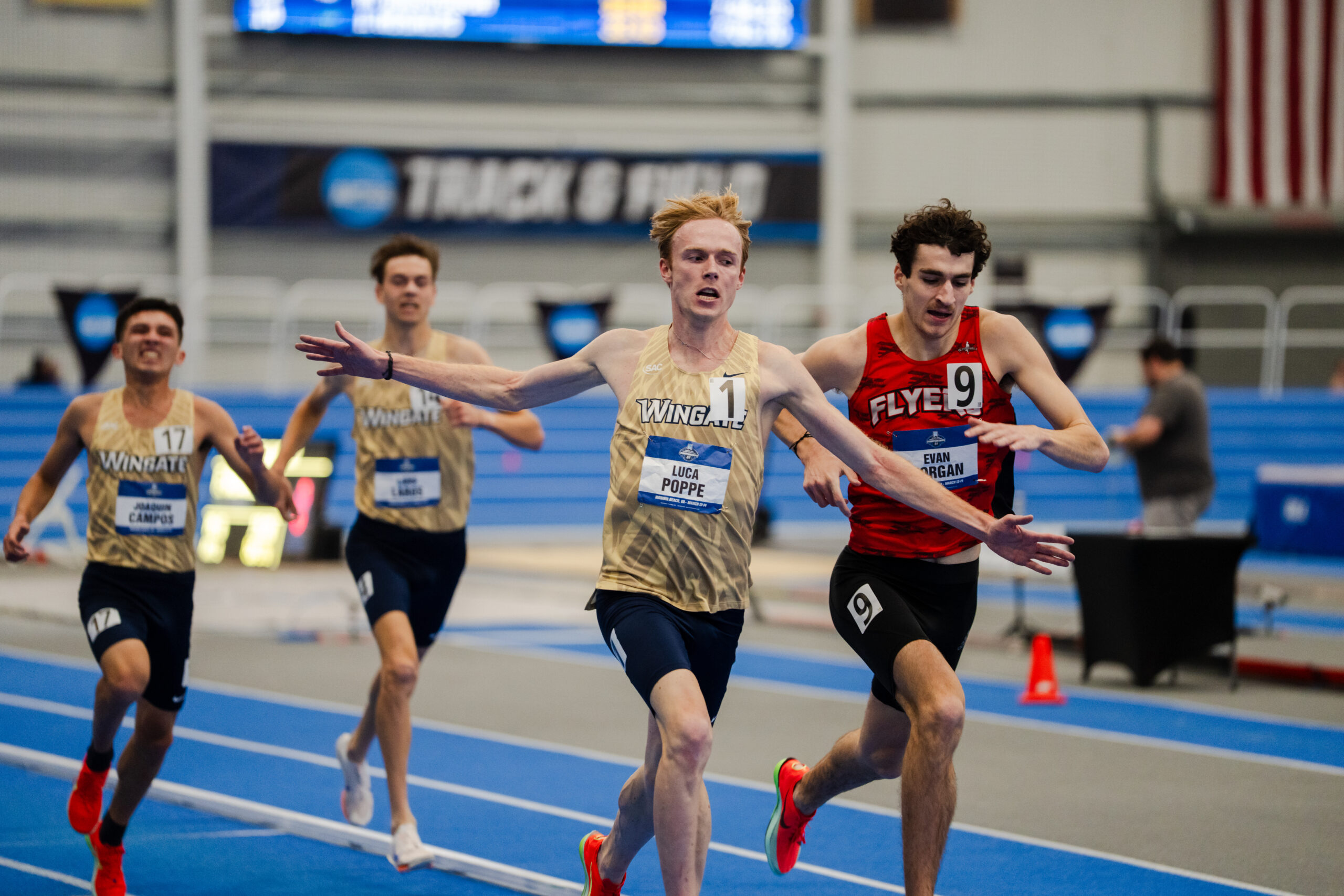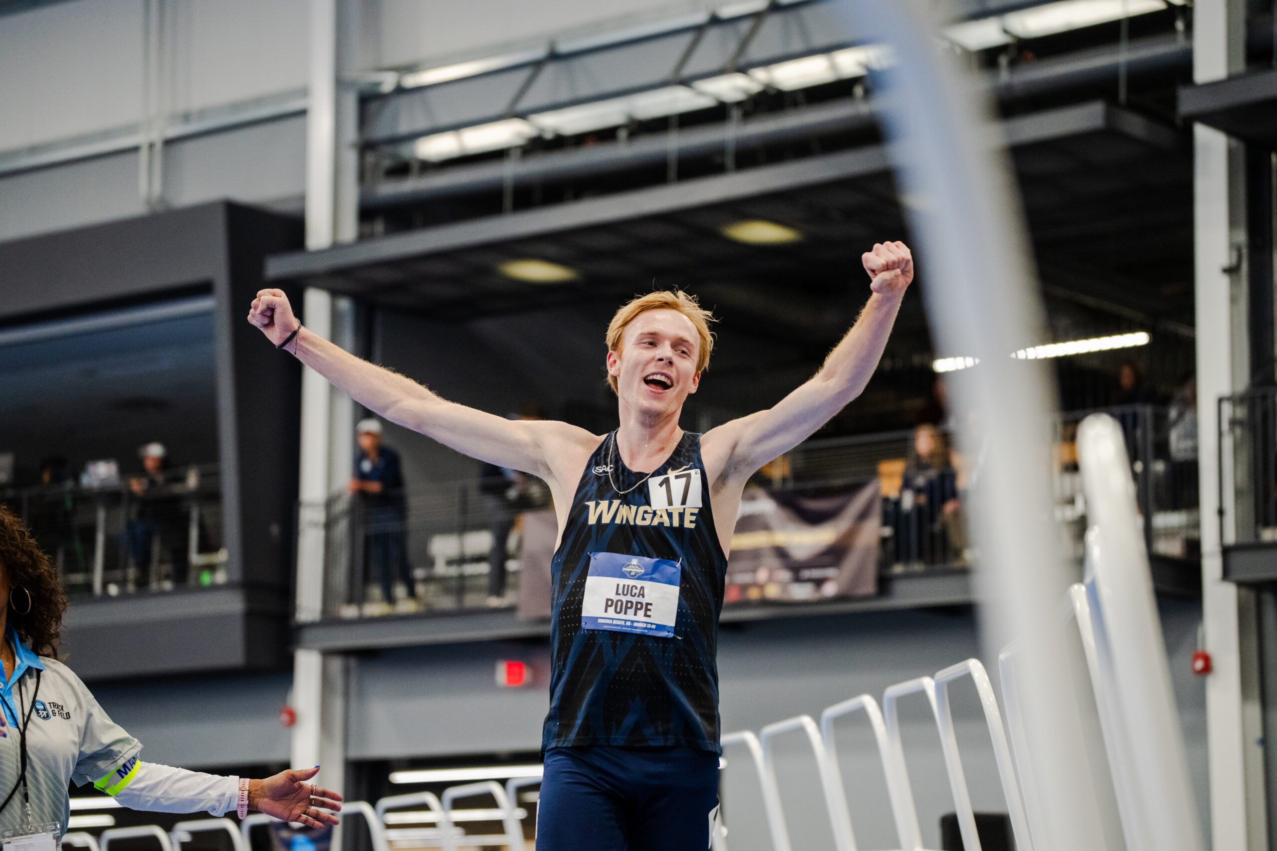 Hij wist dat hij ‘leuk kon rennen’, maar een gouden dubbel bij de indoorkampioenschappen in de NCAA zag hij niet zo gauw gebeuren. Luca Poppe was afgelopen weekend de beste op de 5000 en 3000 meter op het tweede niveau van de Amerikaanse studentenatletiek. Toch zal zijn niveau voor een serieus profcontract nog iets omhoog moeten. De 25-jarige sociologiestudent aan de Wingate University, met een journalistiekdiploma op zak, mikt outdoor op de EK-limiet.