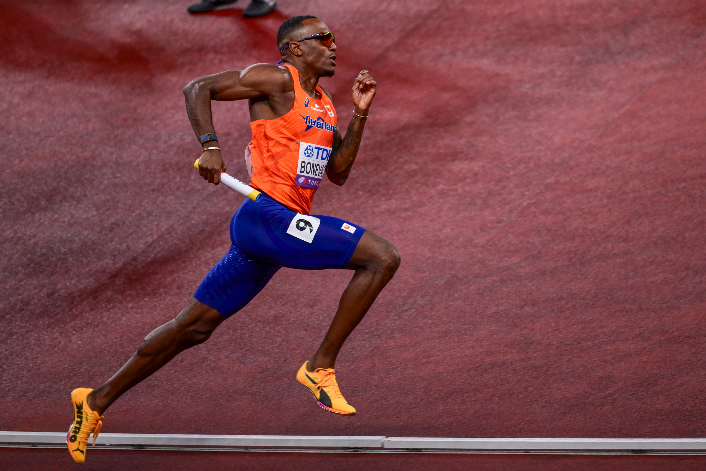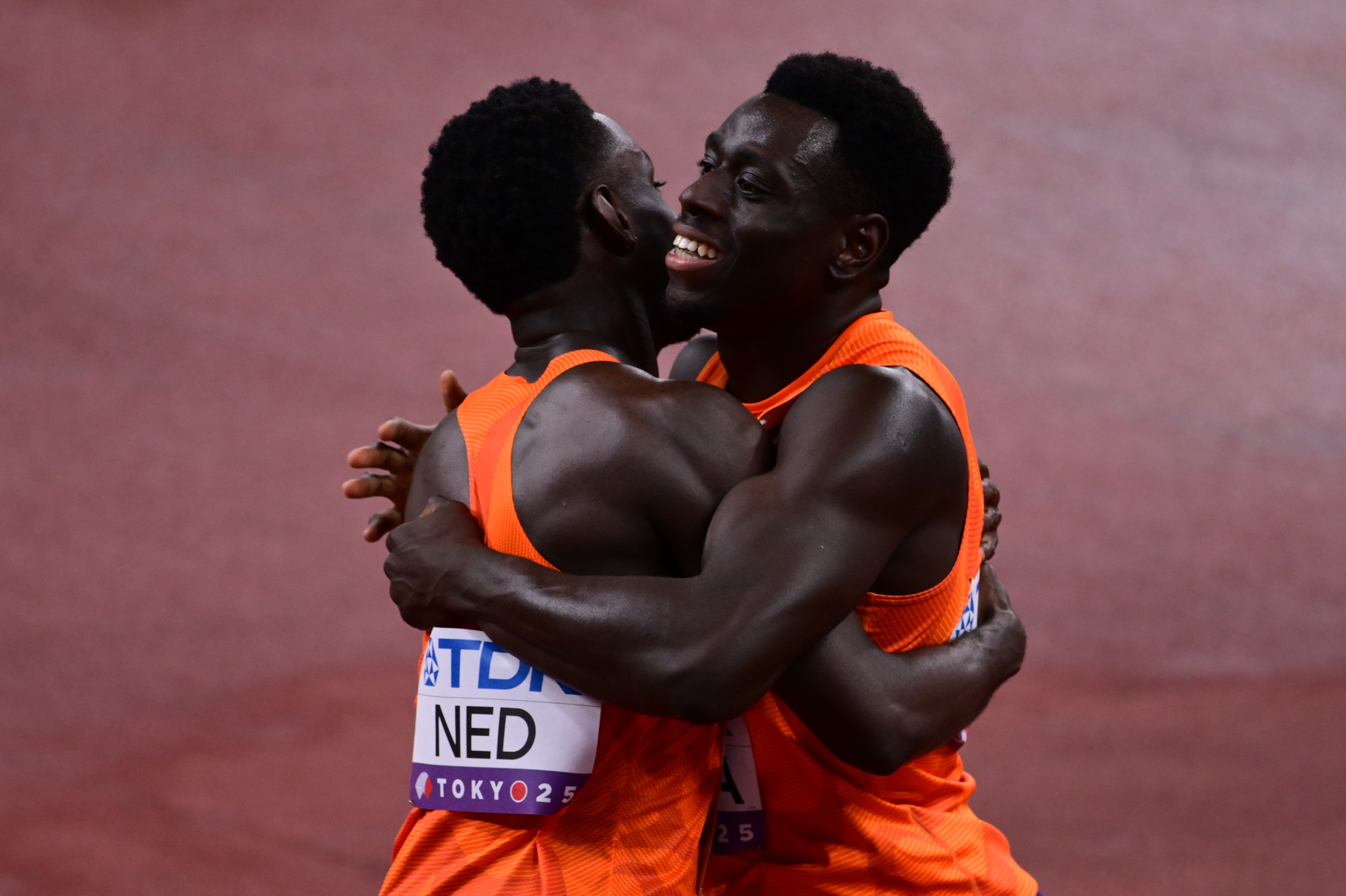 De mannen 4×400 meter mochten als eerste aan de bak met Jonas Phijffers, Eugene Omalla, Ramsey Angela en Liemarvin Bonevacia. Voor de laatste twee mannen was het een emotioneel weerzien met Tokio, daar waar ze in 2021 estafettezilver behaalden met Tony van Diepen en Terrence Agard. Angela vond het geweldig weer terug te zijn. ,,We hebben het hoognodige gedaan om de finale te halen, dat was job 1. We hebben een lange geschiedenis met de 4×400 natuurlijk en ups en downs gehad, maar nu dat we terug zijn op deze magische plek voor ons moesten we de finale halen en dat hebben we gedaan.” Bonevacia vertelde toen hij het stadion in kwam dat hij kippenvel kreeg. ,,Dit is een hele speciale plek voor mij. Het is anders met zoveel publiek. Ik moest mijn emoties een beetje inhouden en probeerde rustig te blijven. Ik had heel veel vertrouwen in Eugene, Jonas en Ramsey. Met mijn ogen dicht wist ik dat we de finale gingen halen, het was gewoon zo’n dag. Soms moet je ook geluk hebben, we hadden geluk dat we in deze serie zaten. Morgen gaan we met hart en ballen lopen.” Phijffers vertelde een slimme race te hebben gelopen. ,,Achteraf had ik nog wat over en op het laatste stuk liep ik nog goed in en kon ik goed finishen op Eugene.” Omalla beaamde dat hij goed en snel kwam. ,,Daardoor kon ik ook snel uit gaan.” De mannen werden derde in hun serie in 3.00.23.